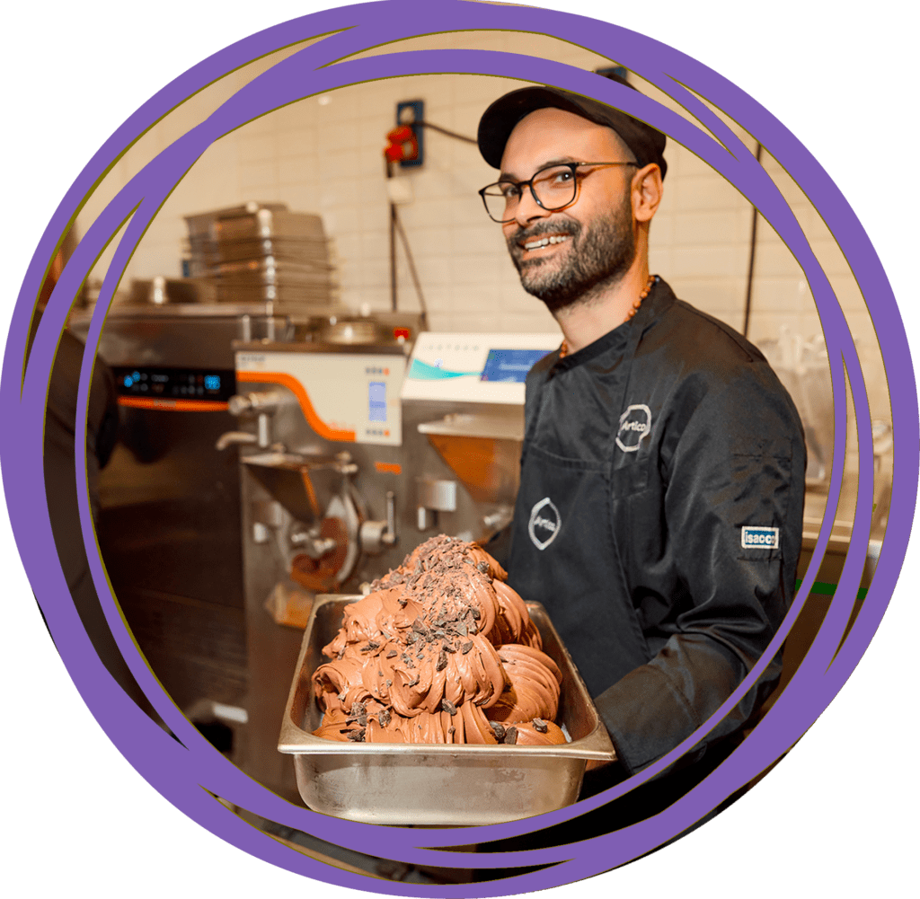Classe 1988, napoletano di nascita e milanese d’adozione, entra in Artico nel 2016. Dalle vendite passa presto al laboratorio guidato da Maurizio Poloni, formandosi anche nella scuola Artico. Nel 2025 diventa supervisore di produzione di tutti i laboratori dei punti vendita Artico; oggi il laboratorio è la sua seconda casa e insegna tecniche pratiche ai futuri gelatieri in Artico Scuola.
